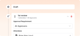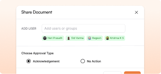 Create custom approval flows for any document type. Get sign-offs in minutes instead of chasing emails for days.